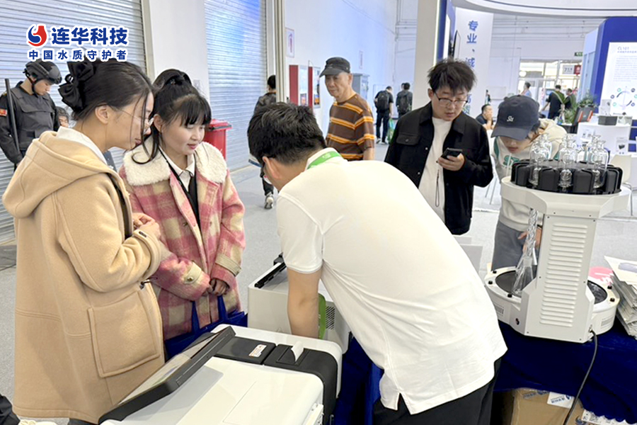 展位上,連華科技的紫外可見分光光度計(jì)LH-S700、便攜式多參數(shù)水質(zhì)測(cè)定儀LH-E200等明星產(chǎn)品整齊陳列。技術(shù)人員現(xiàn)場操作設(shè)備,清晰展示儀器在精度、穩(wěn)定性及操作便捷性上的優(yōu)勢(shì)。面對(duì)觀眾的技術(shù)咨詢,工作人員耐心解答,從儀器原理到應(yīng)用場景,專業(yè)術(shù)語運(yùn)用自如,展現(xiàn)出深厚的技術(shù)功底。
