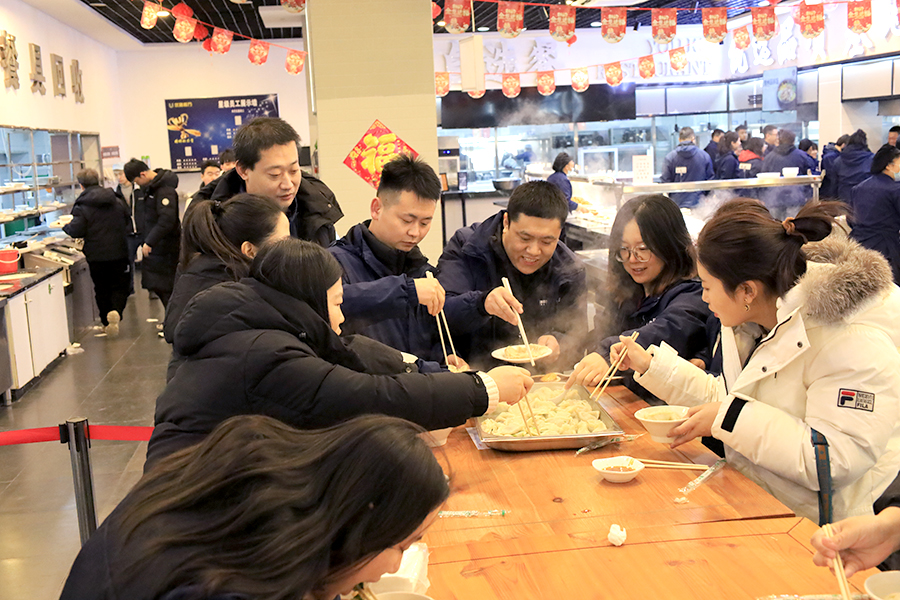 頒獎儀式結束后,一場別開生面的包餃子活動開始了。大家紛紛拿出自己的看家本領,有的搟皮、有的調餡、有的包餃子,大家邊包邊聊,歡聲笑語不斷。現場氣氛熱烈而溫馨,隨著餃子的陸續出鍋,香氣四溢,令人垂涎欲滴。大家圍坐在一起,品嘗著自己的勞動成果,感受著濃濃的年味和彼此之間的深情厚誼。