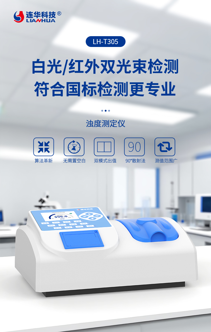 1、符合《HJ 1075-2019 水質 濁度的測定 濁度計法》推薦的雙光束測量;